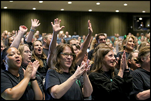 Since 2019, one way RCPS has been intentional in bringing people together in unity and common purpose, is through our faculty convocation held just before school starts for students. This is the one time of year that teachers and other staff members from all 27 schools come together to celebrate our students, our schools, and our staff as one big team. Teachers from each school love to stand and cheer when their school is called during the annual roll call of schools, but we also cheer on each other, regardless of the individual school, and celebrate our common points of pride as one school district.